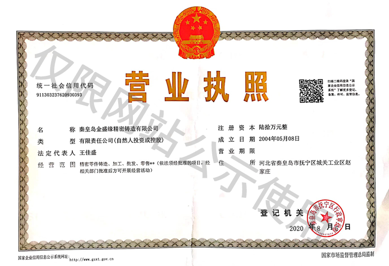秦皇島金盛緣精密鑄造有限公司是ISO9001:2000認(rèn)證企業(yè)。專業(yè)生產(chǎn)各型碳鋼,低合金鋼,不銹鋼以及銅,鋁等有色金屬精密鑄件。公司位于秦皇島市撫寧縣城關(guān)工業(yè)開發(fā)區(qū),西接京,津,唐東臨著名旅游避暑勝地北戴河,交通便利。